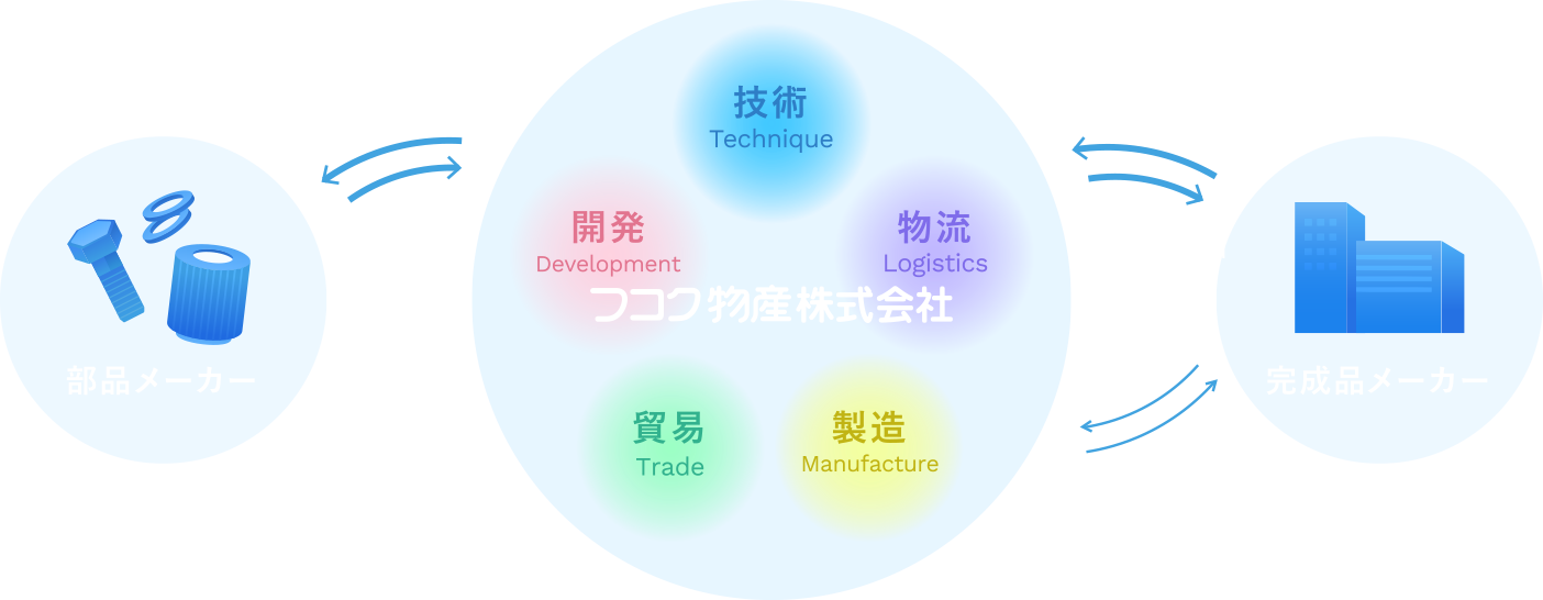 顧客の要求内容に基づき、⾃社及び協⼒サプライヤーの技術と連携し、